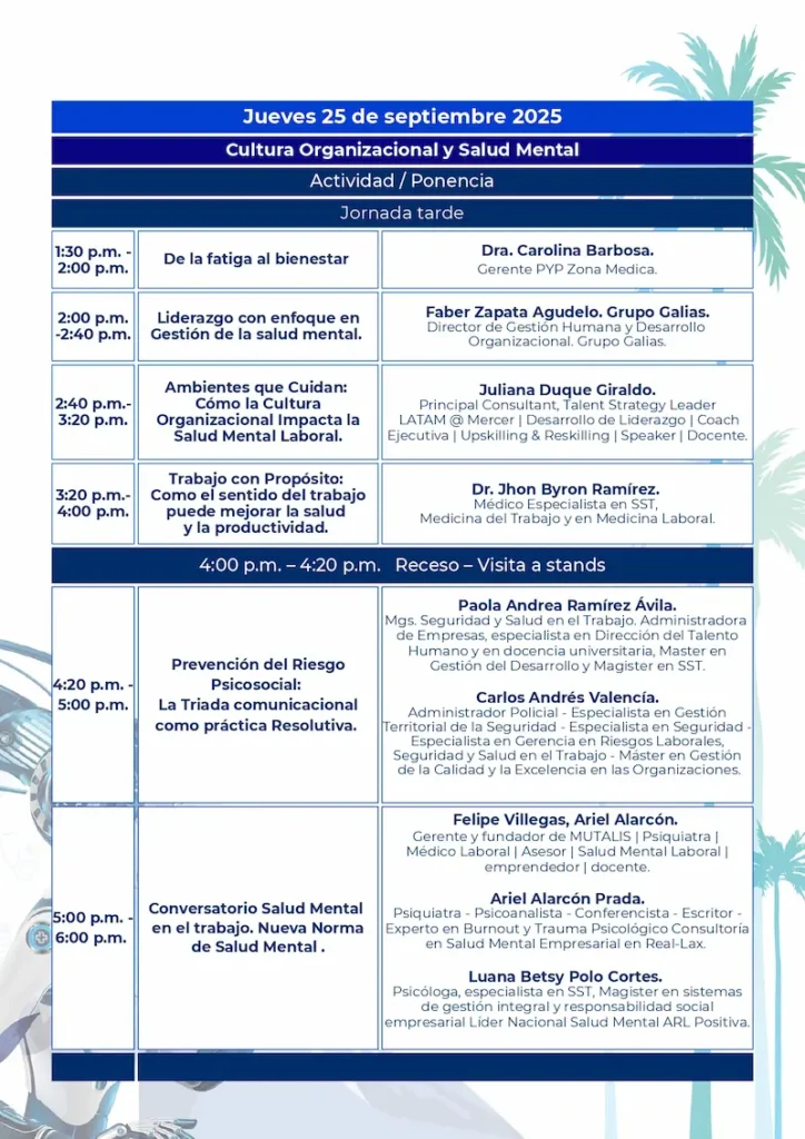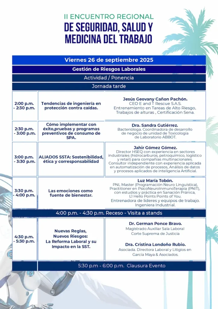 este evento reunirá a especialistas en salud ocupacional, médicos del trabajo, higienistas industriales, ingenieros de seguridad y responsables de recursos humanos para: